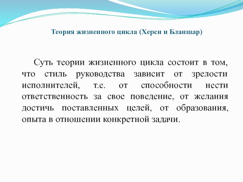 Слайд 5Теория жизненного цикла (Херси и Бланшар)