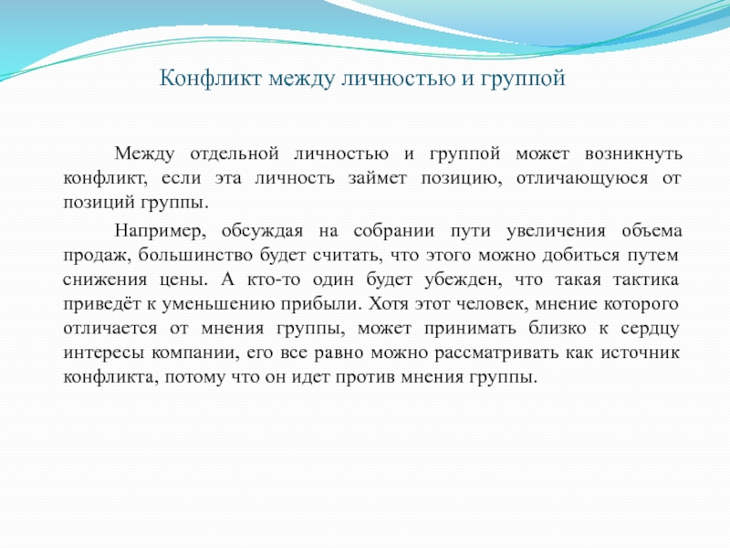 возникнуть конфликт, если эта личность займет позицию, отличающуюся от позиций