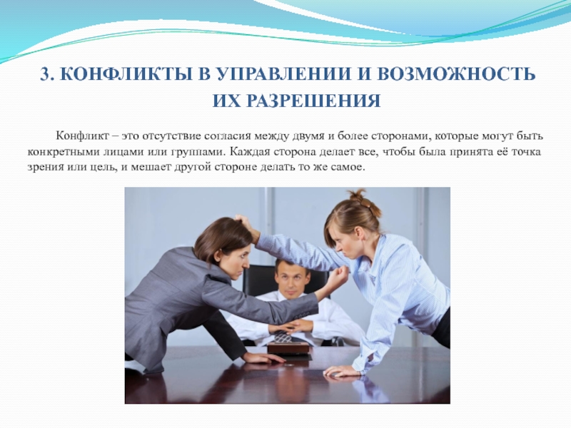 Слайд 163. КОНФЛИКТЫ В УПРАВЛЕНИИ И ВОЗМОЖНОСТЬ ИХ РАЗРЕШЕНИЯ