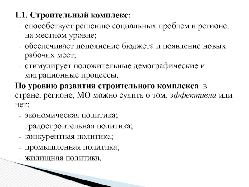 и миграционные процессы. По уровню развития строительного комплекса в стране, регионе, МО можно судить о том, эффективна или нет: