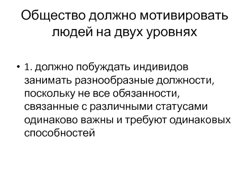 Общество должно мотивировать людей на двух уровнях1. должно побуждать индивидов занимать разнообразные должности, поскольку не все обязанности,