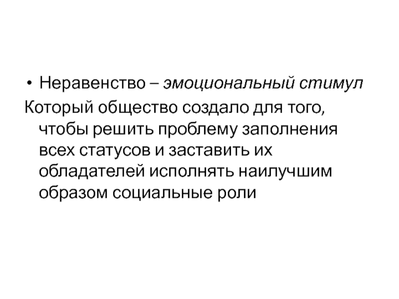 Неравенство – эмоциональный стимулКоторый общество создало для того, чтобы решить проблему заполнения всех статусов и заставить их
