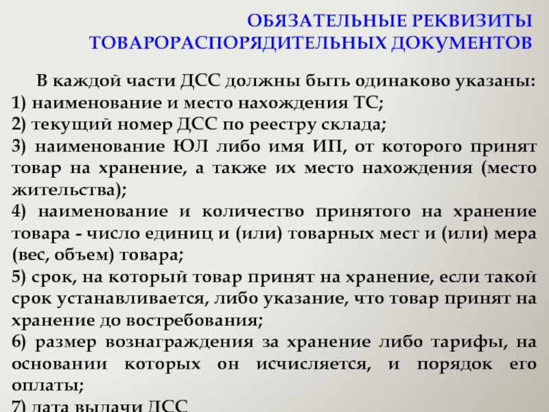 ОБЯЗАТЕЛЬНЫЕ РЕКВИЗИТЫ товарораспорядительных документов