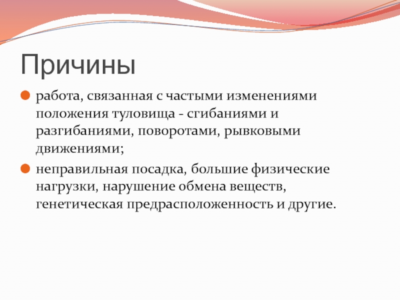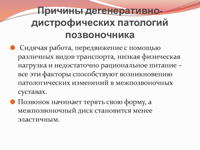 Слайд 5Причины дегенеративно-дистрофических патологий позвоночника