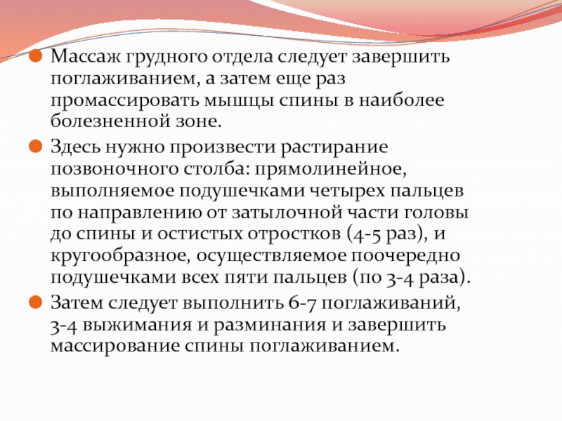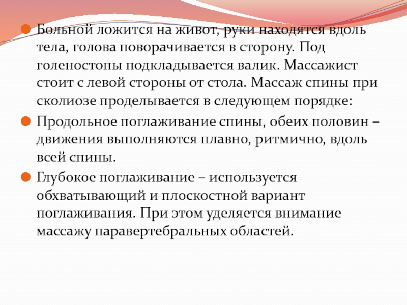 Слайд 834. Необхимо использовать приемы поглаживания, растирания на здоровой стороне спины.