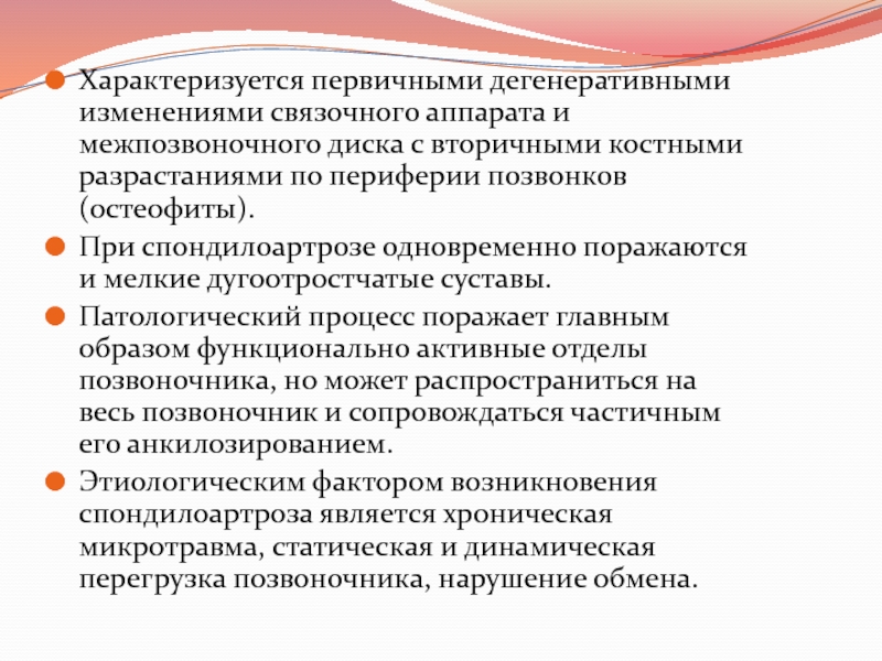 Слайд 7Причиной болевых ощущений является дегенеративное изменение межпозвоночных дисков. При разрушении