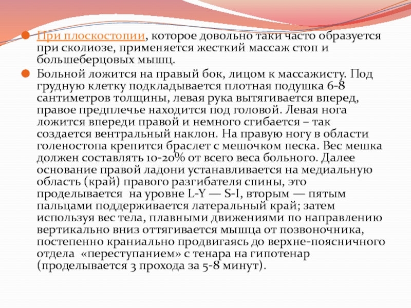 клювовидным. На стороне наибольшего напряжения мышц желательно провести прием накатывания. Все описанные выше приемы призваны расслабить мускулатуру спины, не вызвав у пациента дополнительных болевых ощущений.