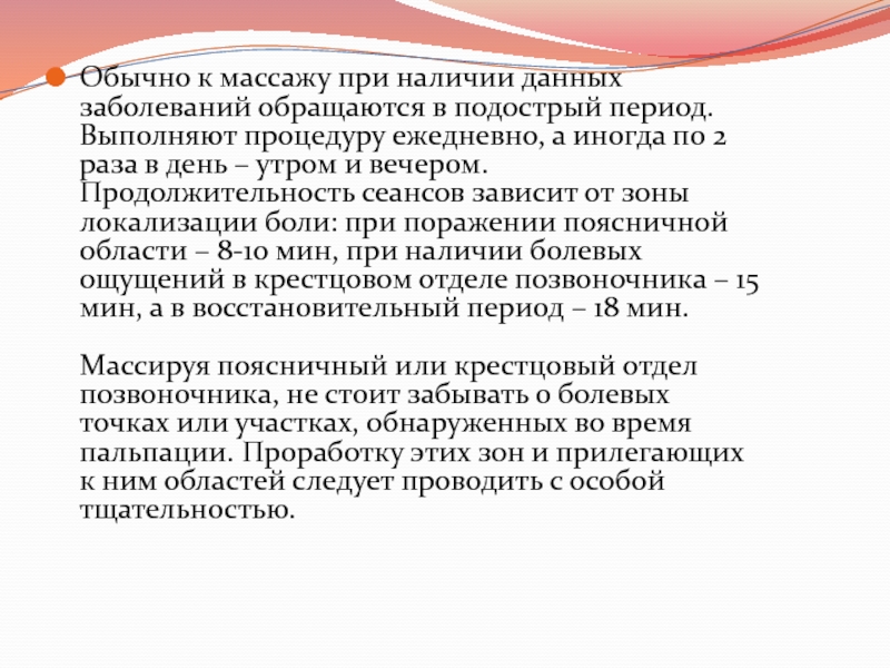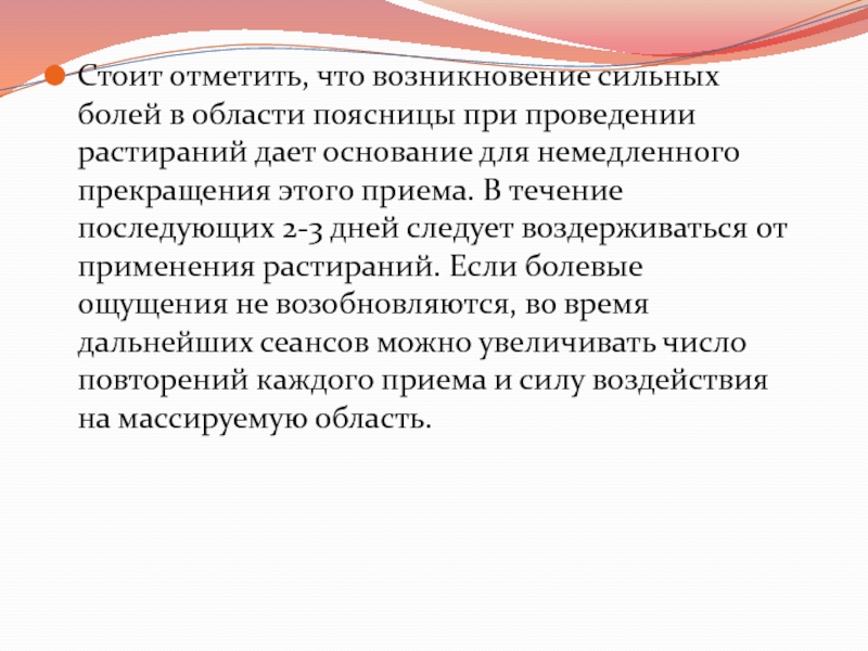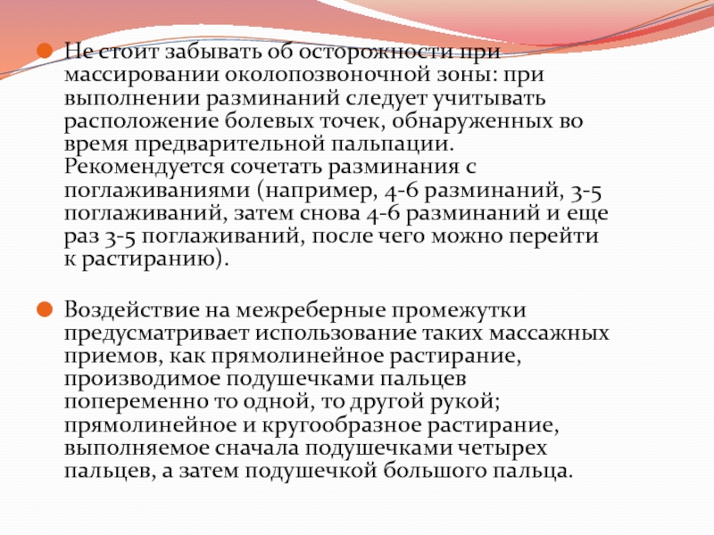 Слайд 18Не стоит забывать об осторожности при массировании околопозвоночной зоны: при