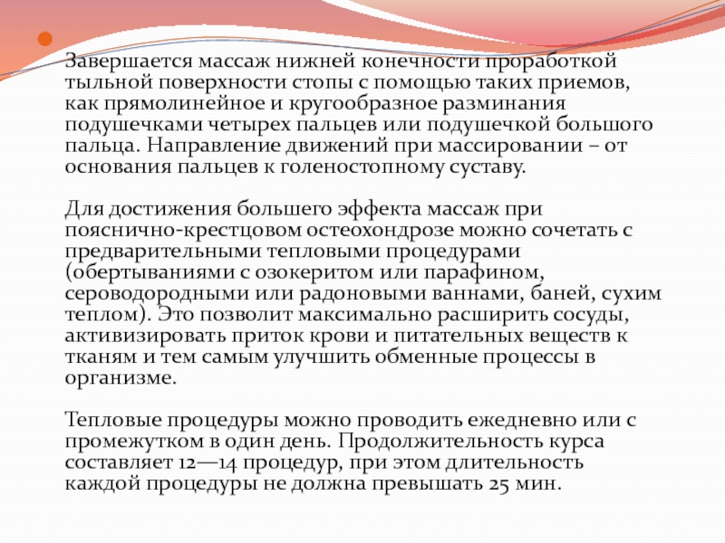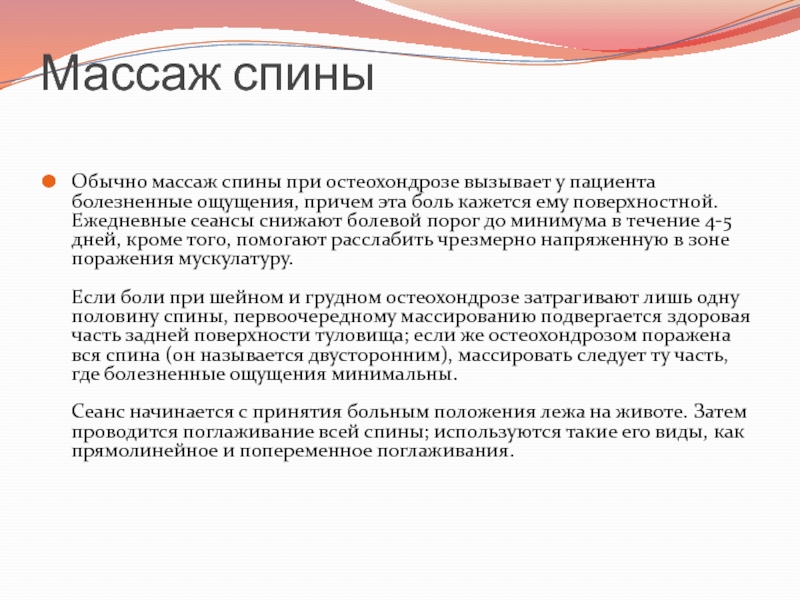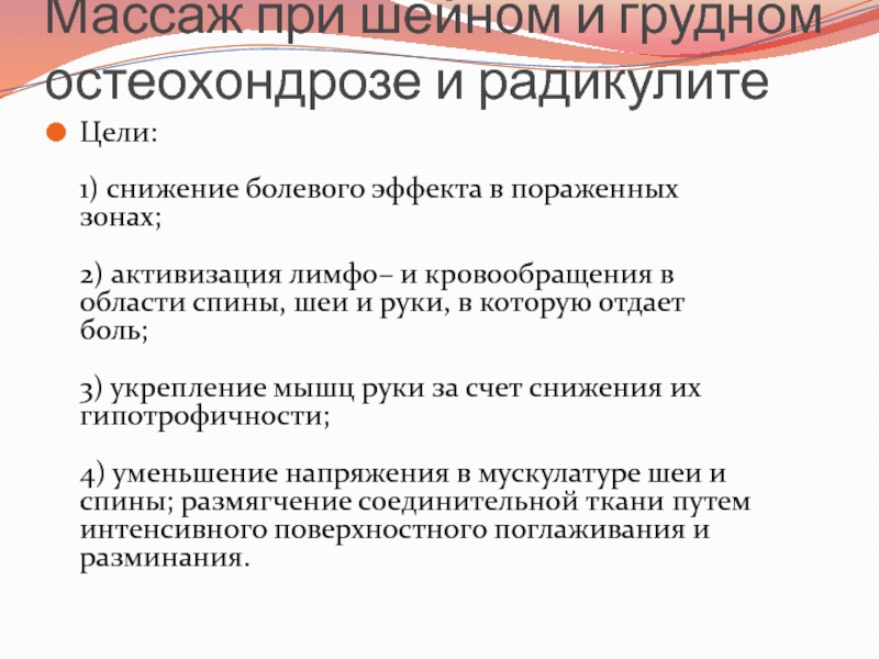 Слайд 12Массаж при шейном и грудном остеохондрозе и радикулите