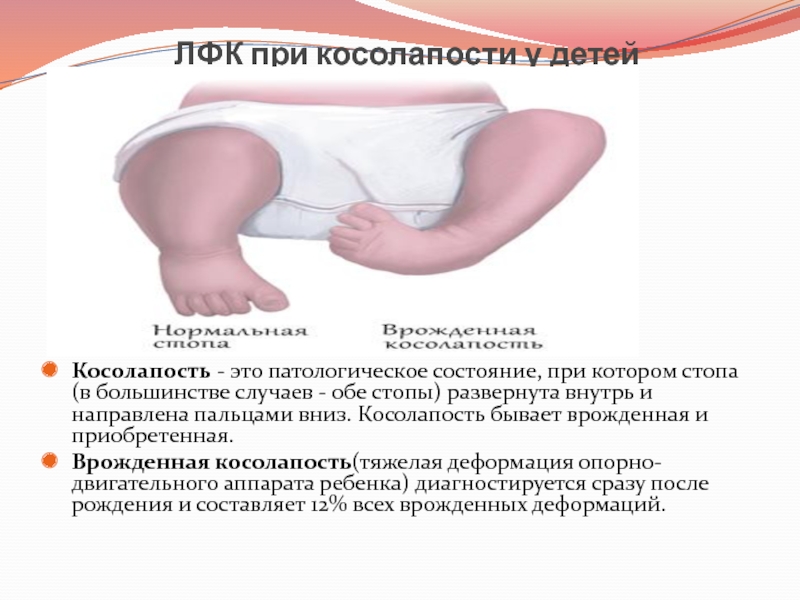 направлена пальцами вниз. Косолапость бывает врожденная и приобретенная.
