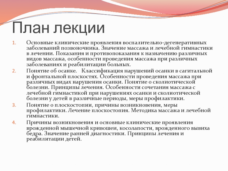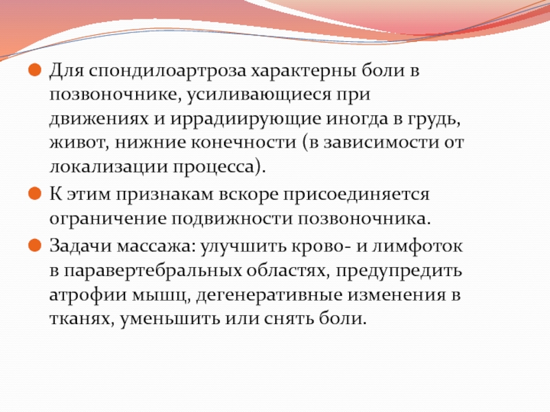 Основные клинические проявления воспалительно-дегенеративных заболеваний позвоночника. Значение массажа и
