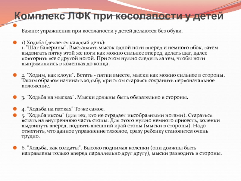Слайд 88Комплекс ЛФК при косолапости у детей