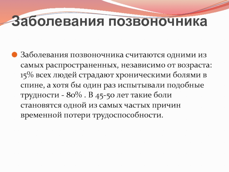 хотя бы один раз испытывали подобные трудности - 80% . В 45-50 лет такие боли становятся одной из самых частых причин временной потери трудоспособности.