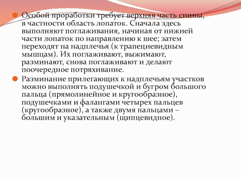 Слайд 17Особой проработки требует верхняя часть спины, в частности область лопаток.