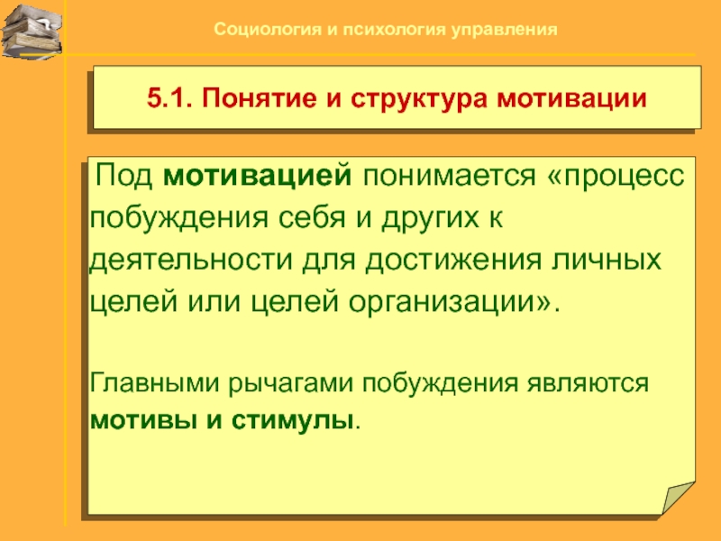 побуждения являются мотивы и стимулы.5.1. Понятие и структура мотивации