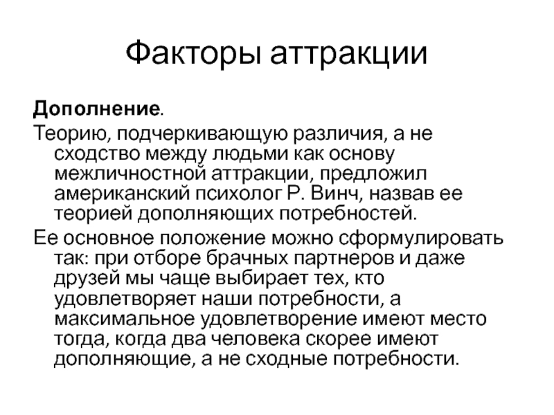 как основу межличностной аттракции, предложил американский психолог Р. Винч, назвав ее