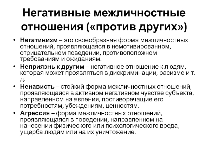 Слайд 9Негативные межличностные отношения («против других»)