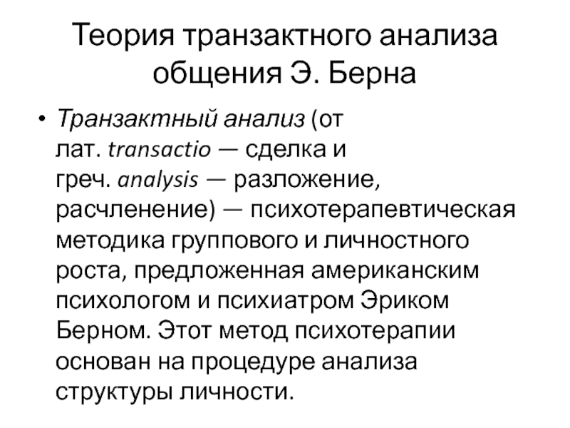 психологом и психиатром Эриком Берном. Этот метод психотерапии основан на процедуре анализа структуры личности.