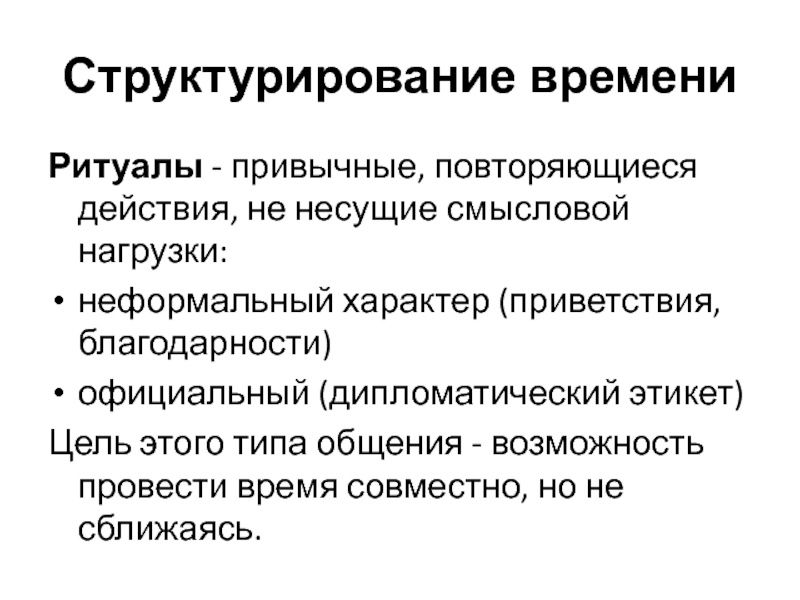 Ритуалы - привычные, повторяющиеся действия, не несущие смысловой нагрузки: