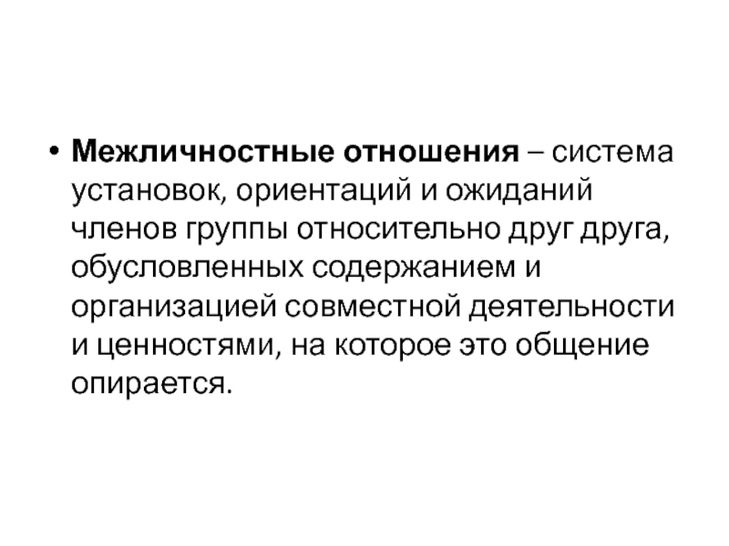 Слайд 2Межличностные отношения – система установок, ориентаций и ожиданий членов группы