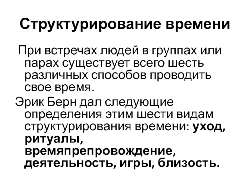 определения этим шести видам структурирования времени: уход, ритуалы, времяпрепровождение, деятельность, игры, близость.