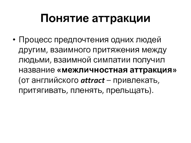 взаимной симпатии получил название «межличностная аттракция» (от английского attract –