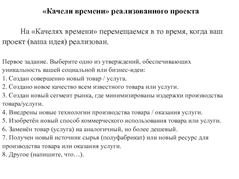 времени» перемещаемся в то время, когда ваш проект (ваша идея)