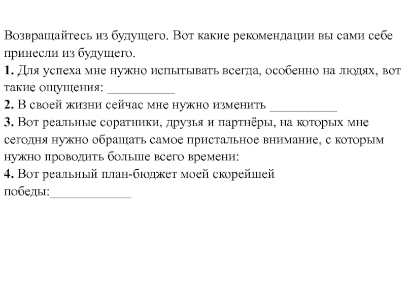 Слайд 86Возвращайтесь из будущего. Вот какие рекомендации вы сами себе принесли