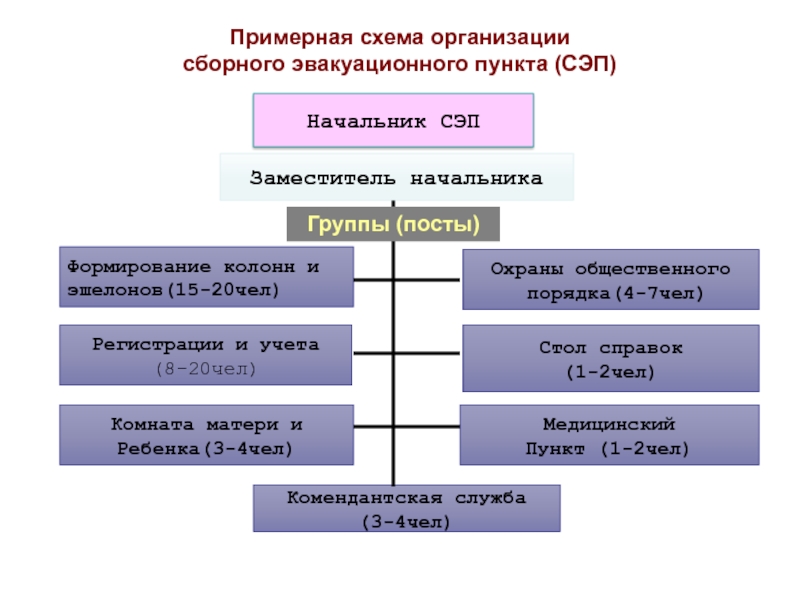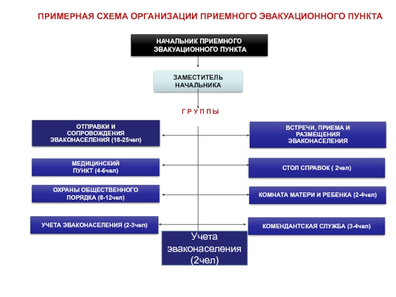 предназначены для руководства работой ПЭП, уточнения численности прибывшего эваконаселения; организации их первоочередного жизнеобеспечения и защиты эвакуируемого населения