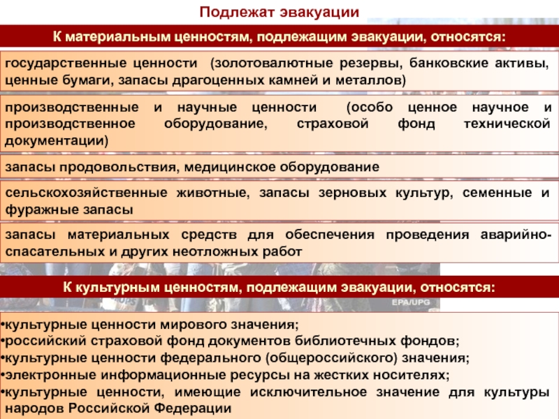 К культурным ценностям, подлежащим эвакуации, относятся: