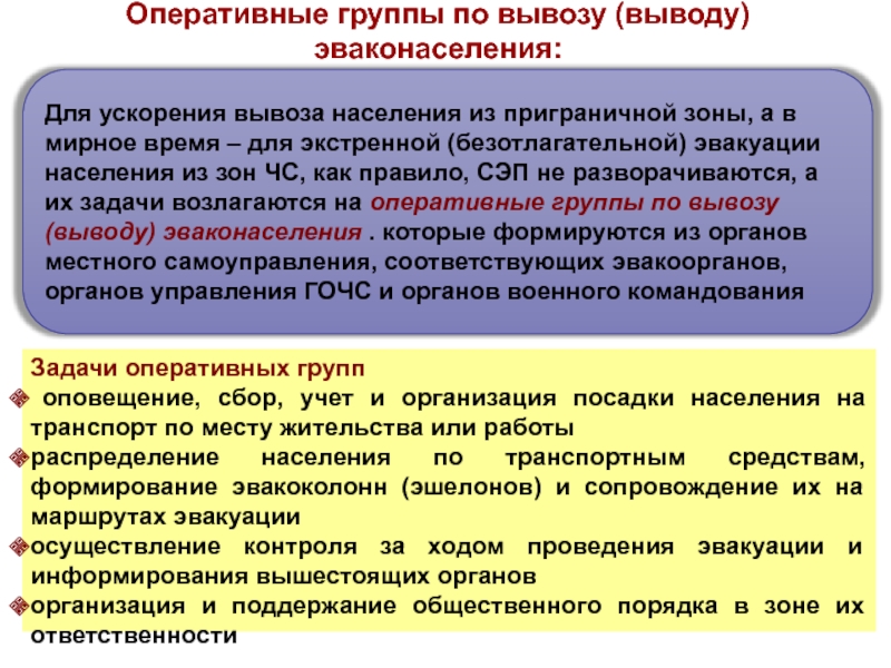 Оперативные группы по вывозу (выводу) эваконаселения: