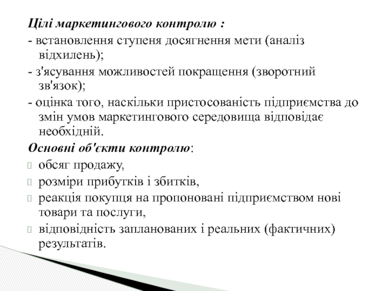 Слайд 41Цілі маркетингового контролю :