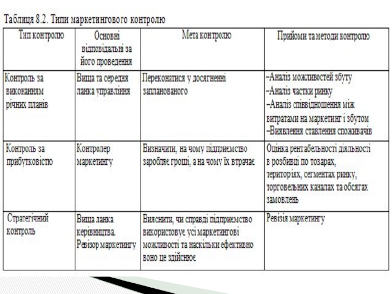 Слайд 40 Контроль маркетингу - це процес оцінки