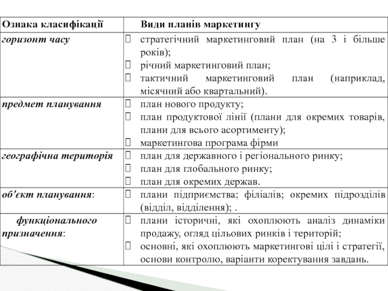 – установити, які пункти маркетингового плану не