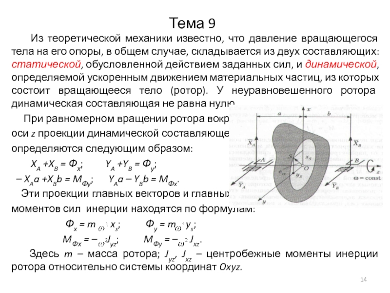 Здесь m – масса ротора; Jyz, Jxz – центробежные моменты инерции ротора относительно системы координат Oxyz.