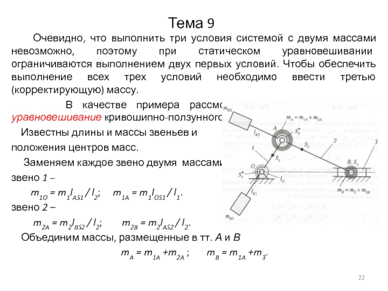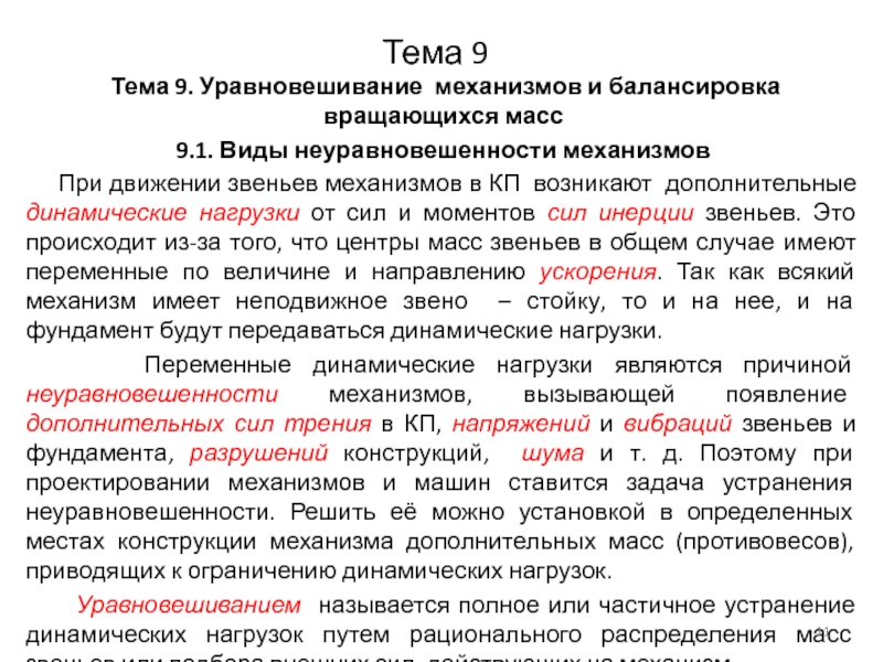 Тема 9. Уравновешивание механизмов и балансировка вращающихся масс