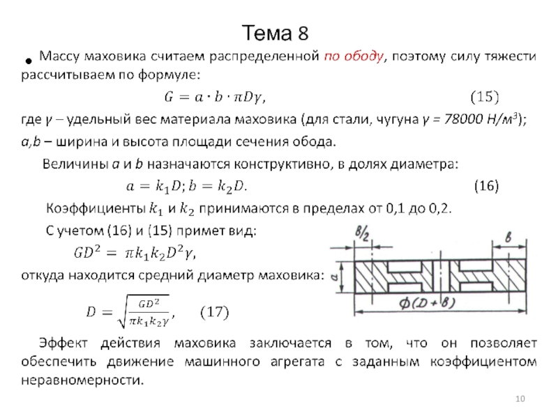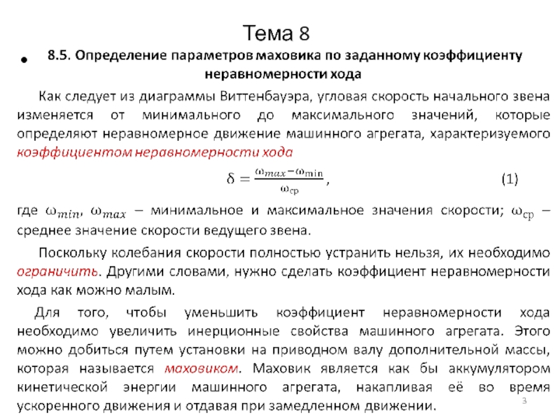 Основное назначение маховика состоит в ограничении колебаний угловой скорости приводного вала в пределах, определяемых заданным коэффициентом неравномерности хода.