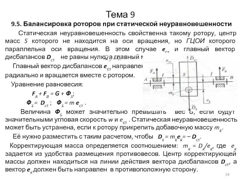 находится на оси вращения, но ГЦОИ которого параллельна оси вращения. В этом случае eст и главный вектор дисбалансов Dcт не равны нулю, а главный момент дисбалансов