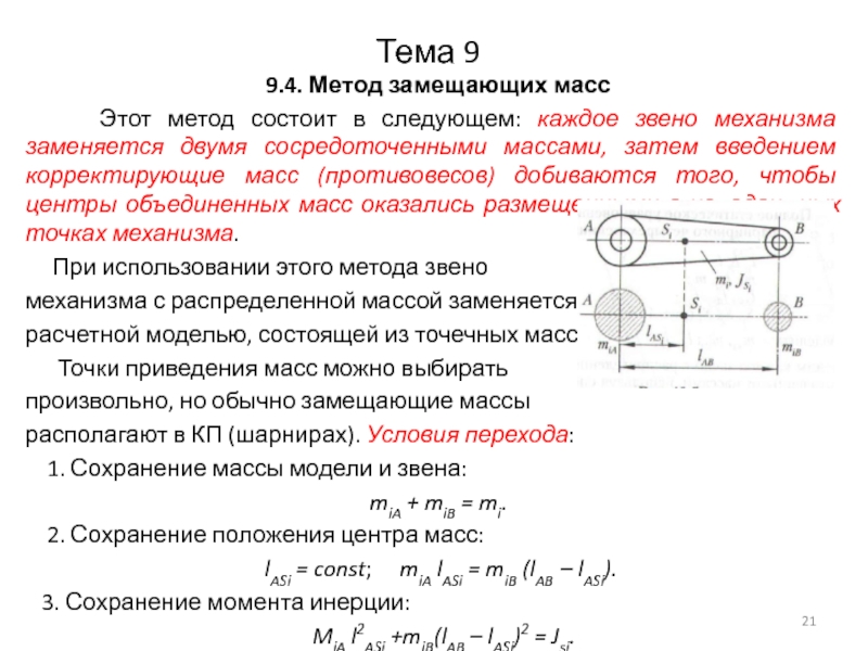 состоит в следующем: каждое звено механизма заменяется двумя сосредоточенными массами,