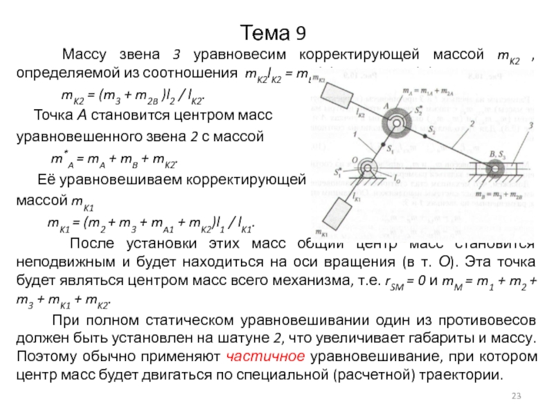 затем введением корректирующие масс (противовесов) добиваются того, чтобы центры объединенных масс оказались размещенными в неподвижных точках механизма.