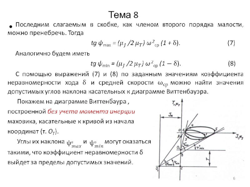 Эффективным методом решения этой задачи является использование диаграммы Виттенбауэра. Касательные, проведенные к этой диаграмме и соответствующие допустимым для заданного коэффициента неравномерности хода значениям максимальной и минимальной угловой скорости ведущего звена, позволяют определить величину необходимого момента инерции маховика.