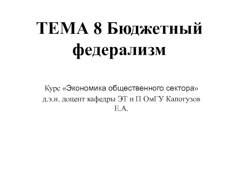 Слайд 1ТЕМА 8 Бюджетный федерализм