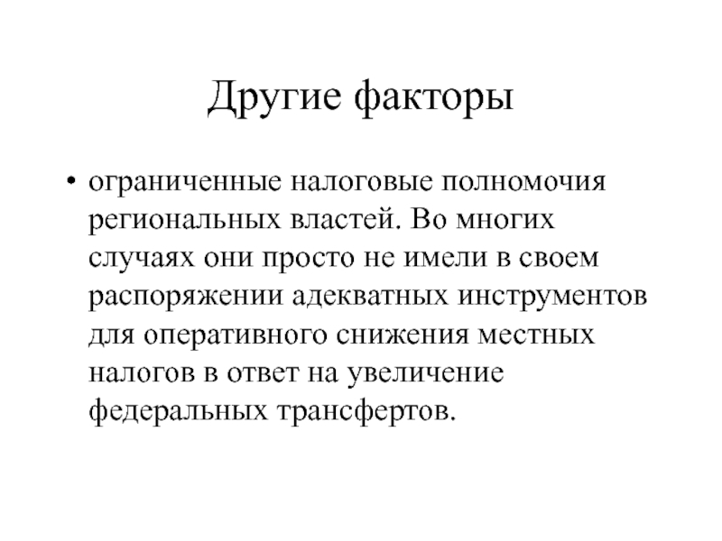 ограниченные налоговые полномочия региональных властей. Во многих случаях они