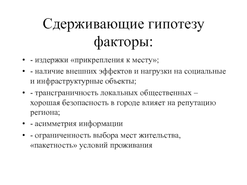 Слайд 8Сдерживающие гипотезу факторы: