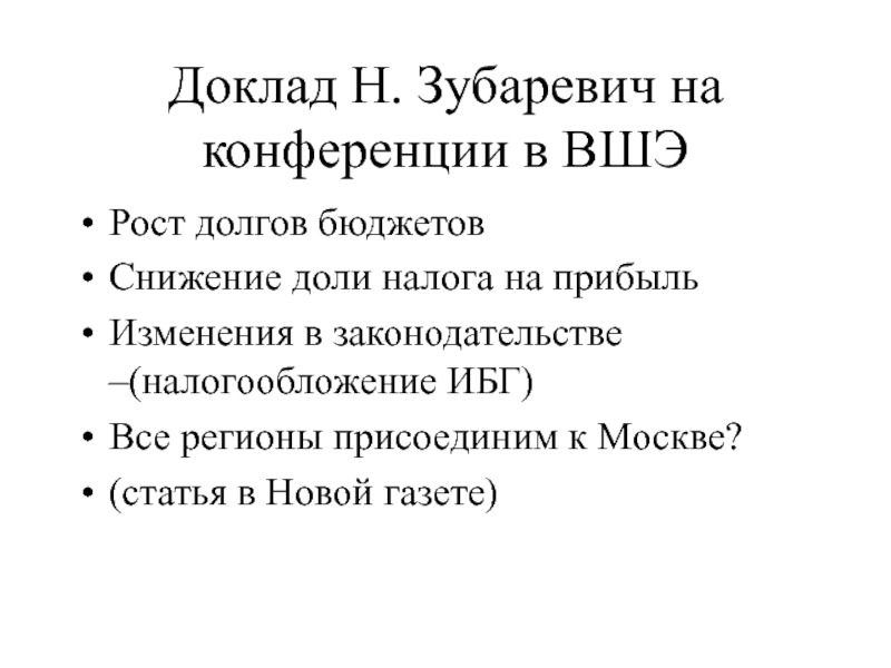 Слайд 35Доклад Н. Зубаревич на конференции в ВШЭ