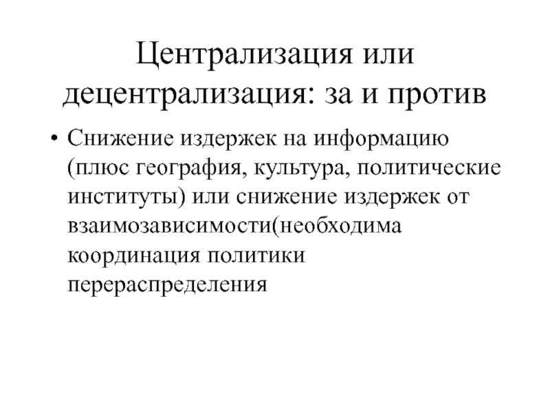 Слайд 4Централизация или децентрализация: за и против