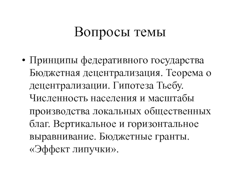 Принципы федеративного государства Бюджетная децентрализация. Теорема о децентрализации. Гипотеза