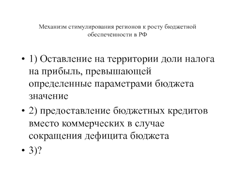 Слайд 28Механизм стимулирования регионов к росту бюджетной обеспеченности в РФ