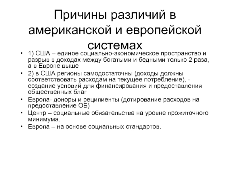 Слайд 32Причины различий в американской и европейской системах