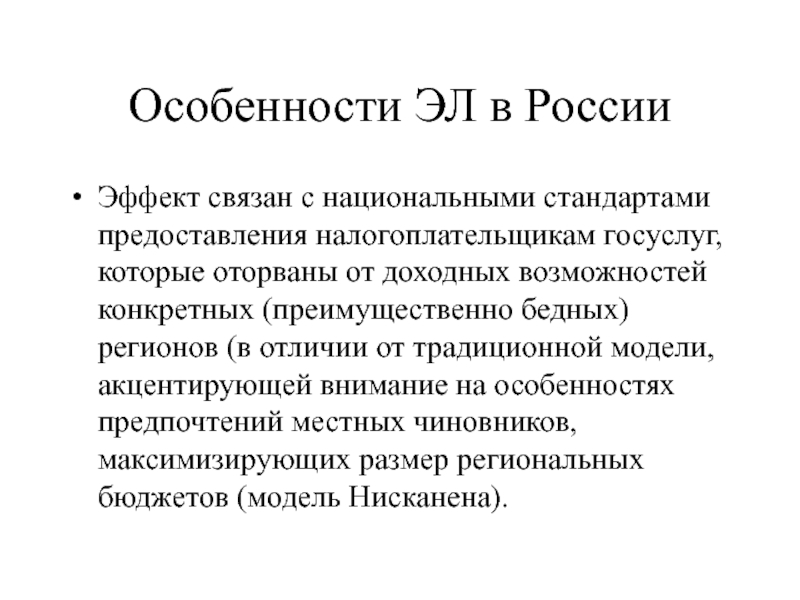 Слайд 24Особенности ЭЛ в России